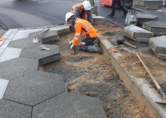 • The interconnected slabs with aneasyinstallation and removal following a given path. Smaller and lightweighter (<300 kg) with sanded seal at the connections (fig. 4). Two sites equipped with interconnected slabs are available in Nantes/France : city center a 12mx 7msite and at the pavement fatigue carrousel at the Nantes campus of Gustave Eiffel University (2m x 8m site) (fig. 5).